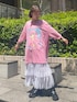 ピンクのビッグTシャツに チュール素材のワンピースを合わせた レイヤードスタイル★ candystripper福岡/河野/160cm