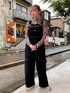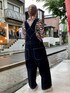 ゼブラ柄のシアートップスに ブラックのサロペットを合わせた モノトーンコーデ★ candy stripper原宿店/石本/160cm