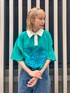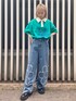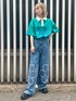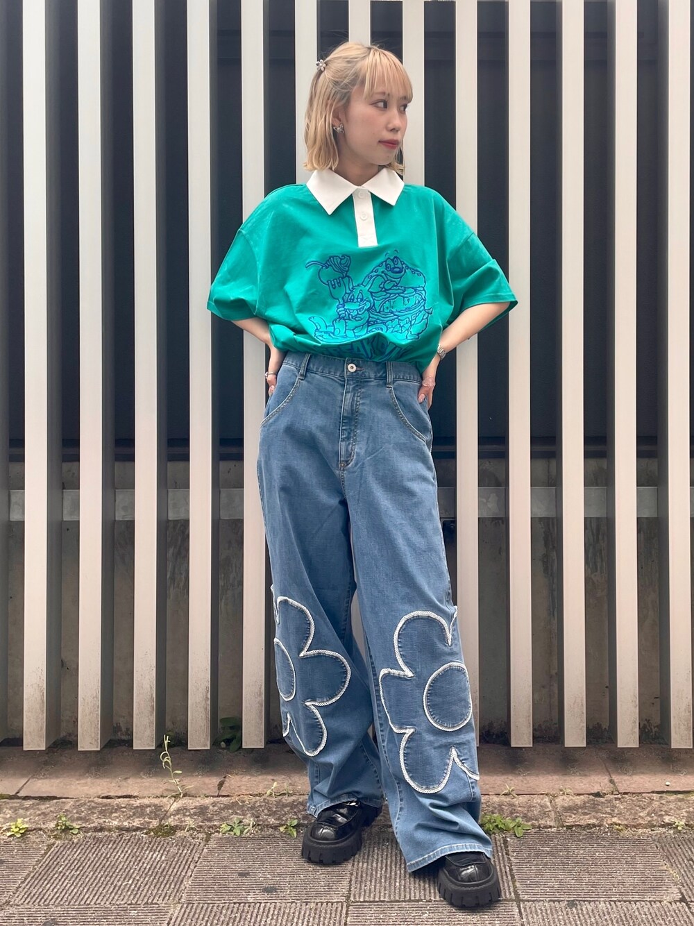 ポロトップスにフラワーモチーフが ポイントのデニムパンツを合わせた カジュアルコーデ♡ candy stripper福岡店/河野/160cm