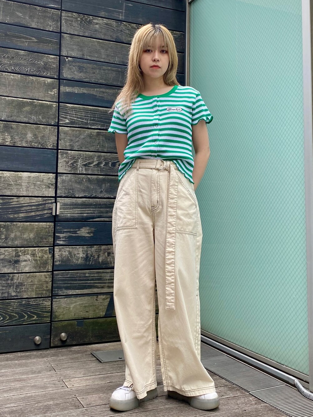 コンパクトなカーディガンに ワイドパンツを合わせた お出かけコーデ⭐︎ candy stripper原宿店/石本/160cm