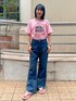 ピンクのTシャツに デニムパンツを合わせた 夏コーデ♡ candy stripper福岡店/河野/160cm
