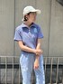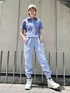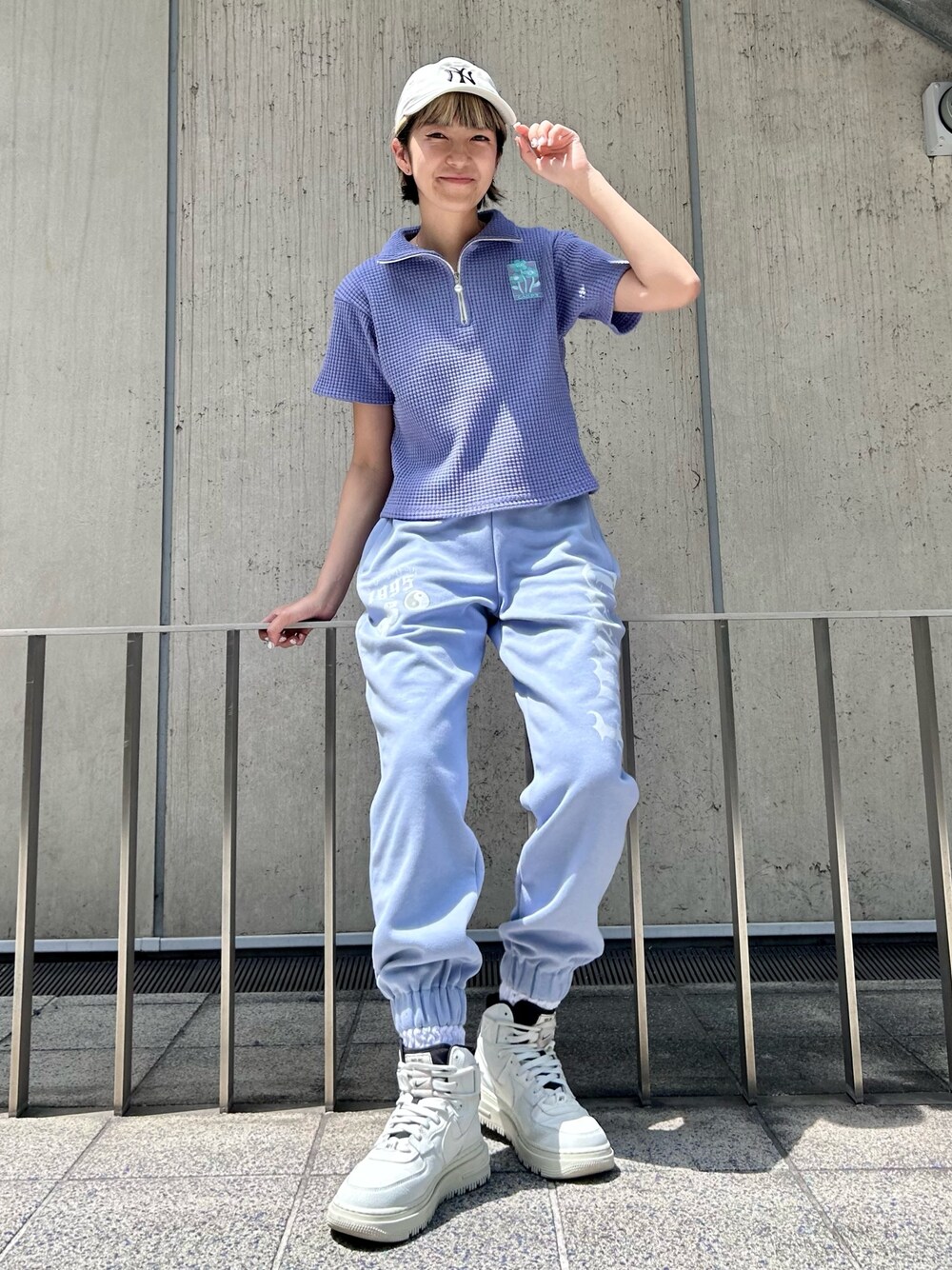 ワッフル素材のコンパクトトップスに トラックパンツを合わせた ストリートコーデ♪ candy stripper本社/小原/162cm