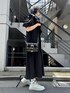 つけ襟がポイントのロングワンピースに ショルダーバッグとスニーカーを合わせたモードコーデ★ candy stripper本社/小原/162cm