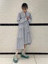 アシンメトリーな切り替えがポイントの シャツワンピースにスニーカーを合わせた ガーリーコーデ♡ candy stripper福岡店/河野/160cm