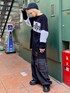 ワッフル素材のロンTに カーゴパンツとキャップを合わせた ストリートコーデ♪ candy stripper原宿店/久慈/148cm