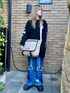 両袖のプリントがポイントのロンTに デニムパンツとメッセンジャーバッグを 合わせたストリートコーデ♪ candy stripper原宿店/石本/160cm