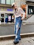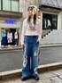 ワッフル素材のロンTに ダメージ加工のデニムパンツと うさ耳のビーニーを合わせた カジュアルコーデ♪ candy stripper原宿店/石本/160cm
