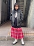スウェットにチェックのティアードスカートとジャケットを合わせた 秋のお出かけコーデ♪ candy stripper福岡店/河野/160cm