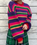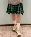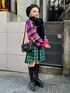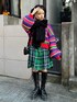 レトロなカラーリングのショート丈の ニットにチェックスカートとベレー帽を 合わせたストリートコーデ♪ candy stripper原宿店/久慈/148cm