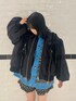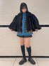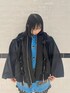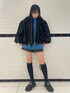 ブルーのカーディガンに ショートパンツとショート丈のMA-1を 合わせたブラックコーデ♪ candy stripper福岡店/河野/160cm
