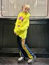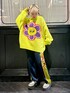フラワーモチーフのニットトップスに PEPE&DRAGONの刺繍を施した トラックパンツを合わせた カジュアルコーデ☆ candy stripper名古屋店/太田/156cm
