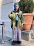 セーラーカラーのMA-1に パーカーとチェックのプリーツスカートを 合わせたカジュアルコーデ♪ candy stripper原宿店/久慈/148cm