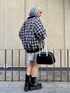 ハーフジップワンピースに チェックのMA-1とボストンバッグを 合わせたストリートコーデ★ candy stripper原宿店/久慈/148cm