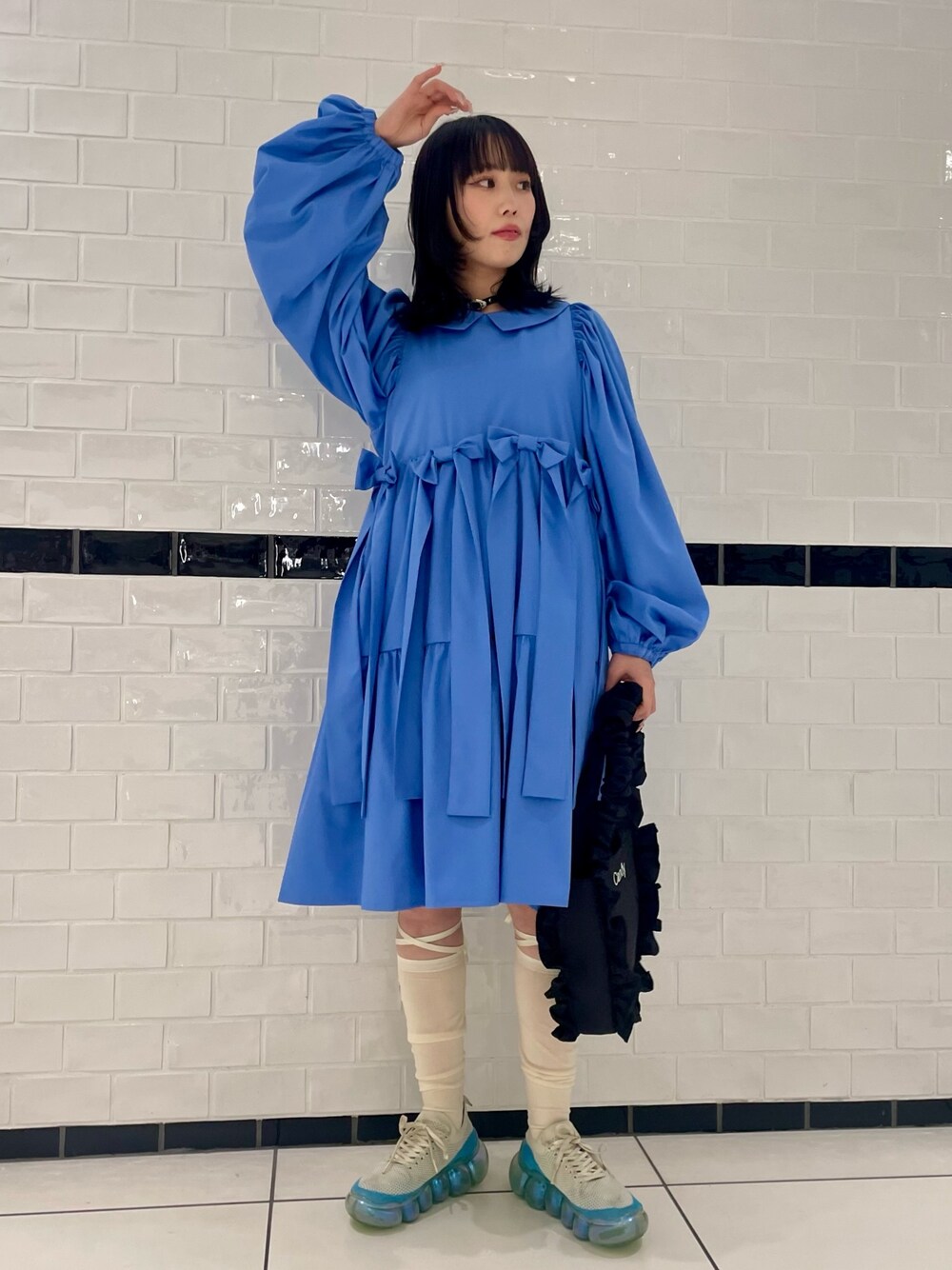 ブルーのワンピースに フリルバッグを合わせた ガーリーコーデ♡ candy stripper福岡店/河野/160cm