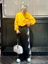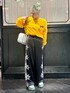 ゴールデンイエローのロンTに スターモチーフのアップリケ刺繍がポイントのトラックパンツを合わせた ストリートコーデ★ candy stripper名古屋店/太田/156cm