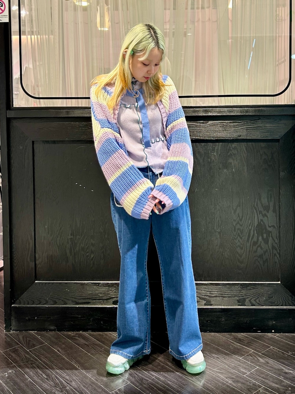 リブトップスにボレロと デニムパンツを合わせた カジュアルコーデ♪ candy stripper名古屋店/太田/156cm