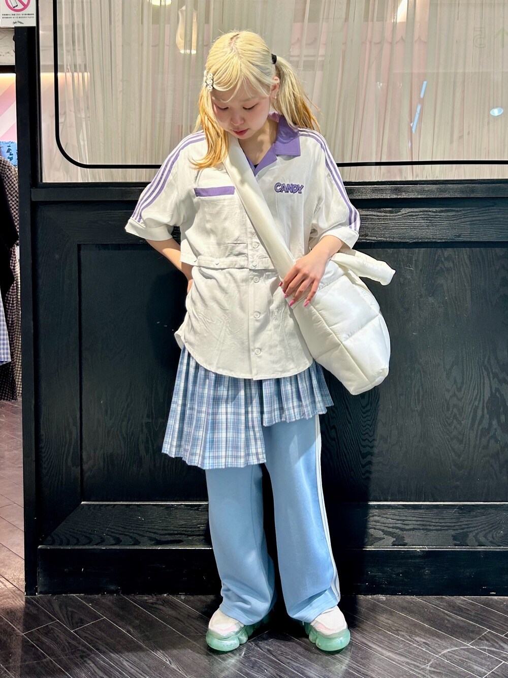 2way仕様のシャツにレイヤードパンツとショルダーバッグを合わせた スポーティコーデ♪ candy stripper名古屋店/太田/156cm