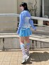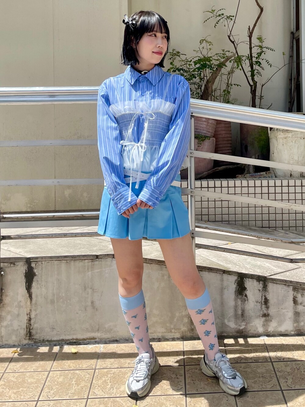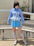 ショート丈のシャツにキャミソールと ミニスカートを合わせた ブルーコーデ♡ candy stripper福岡店/河野/160cm