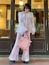 セーラーカラーのオーガンジーブラウスに キャミソールとフレアパンツを合わせた デートコーデ♡ candy stripper福岡店/河野/160cm