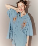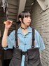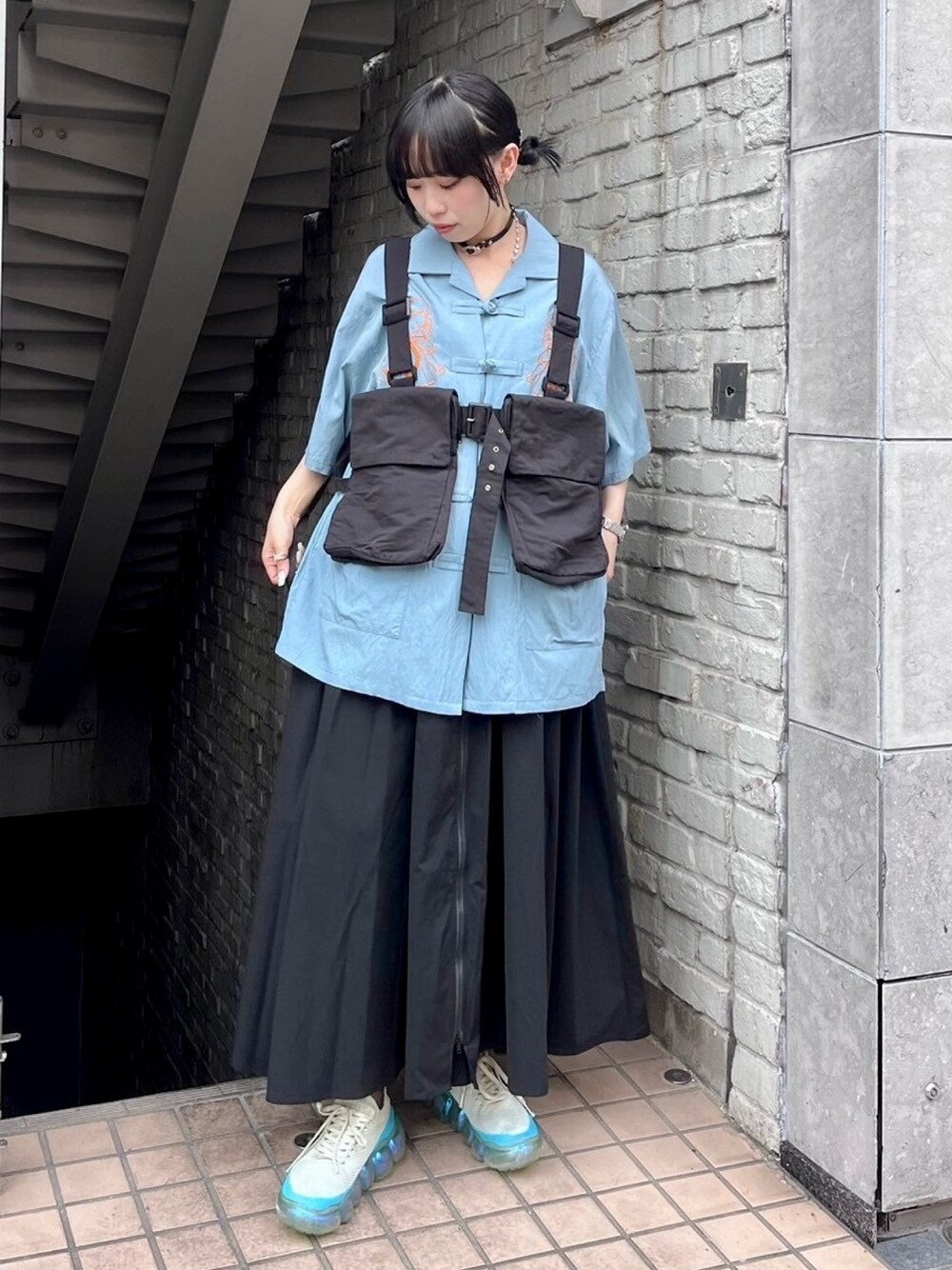 ライトブルーのチャイナシャツに キャミワンピとミリタリーベストを 合わせたストリートコーデ♪ candy stripper福岡店/河野/160cm