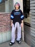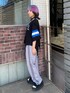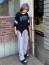 ガーターディテールがポイントの リンガーTシャツに イージーパンツを合わせた ストリートコーデ★ candy stripper原宿店/久慈/148cm