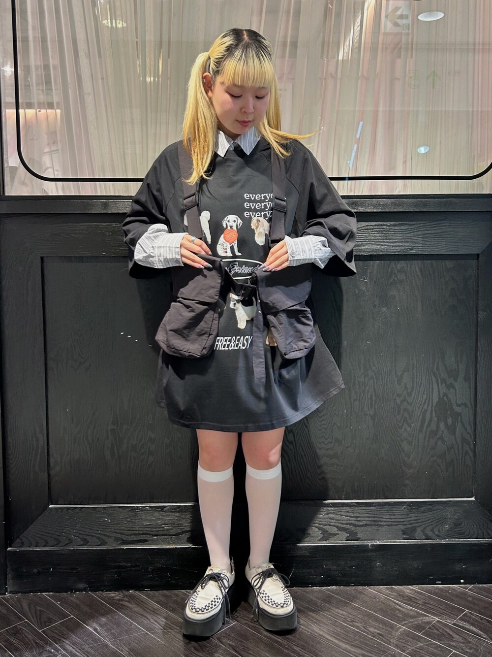 CandyStripper(Candy Stripper STAFF)のTシャツ/カットソー「HAPPY FRIENDS OVER SIZE RAGLAN トップス」を使ったコーディネート