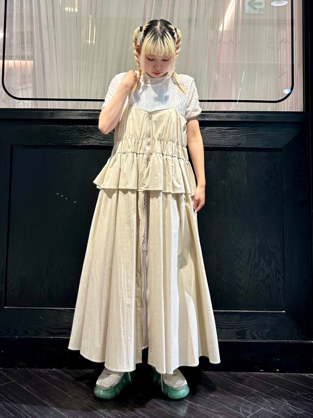 コンパクトトップスに メッシュワンピとキャミワンピを合わせた カジュアルコーデ☆ candy stripper名古屋店/太田/156cm