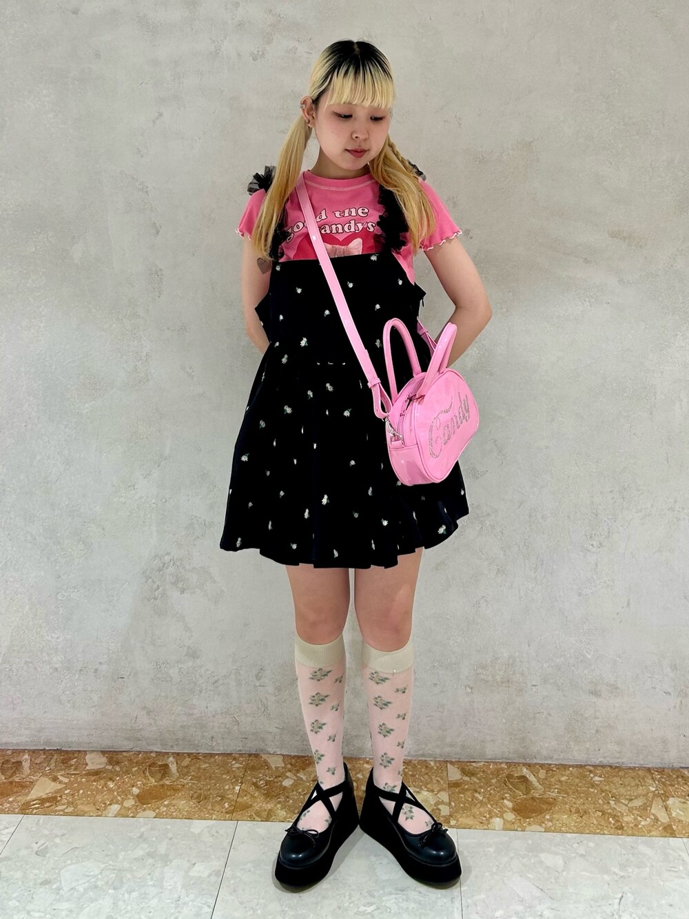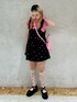 コンパクトトップスに ミニワンピースとショルダーバッグを合わせたガーリーコーデ♡ candy stripper名古屋店/太田/156cm