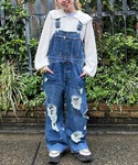 白Tシャツにデニムサロペットと トラックジャケットを合わせた ストリートコーデ♪ candy stripper原宿店/久慈/148cm