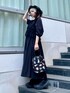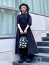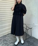 チュールビスチェを重ねたレイヤードデザインのシャツワンピースにバケットハットを合わせたブラックコーデ★ candy stripper原宿店/久慈/148cm