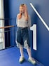 タートルトップスにデニムショーツを 合わせたカジュアルコーデ⭐︎ candy stripper名古屋店/太田/156cm
