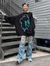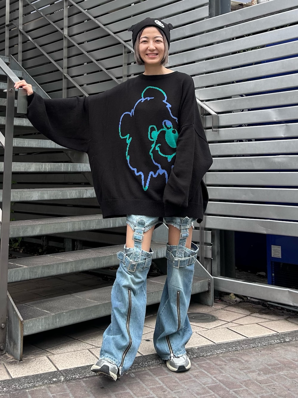 どろっと溶けたくまがファニーなニットにデニムパンツを合わせた ストリートコーデ★ Candy Stripper本社/小原/162cm