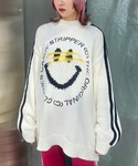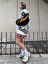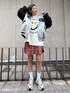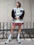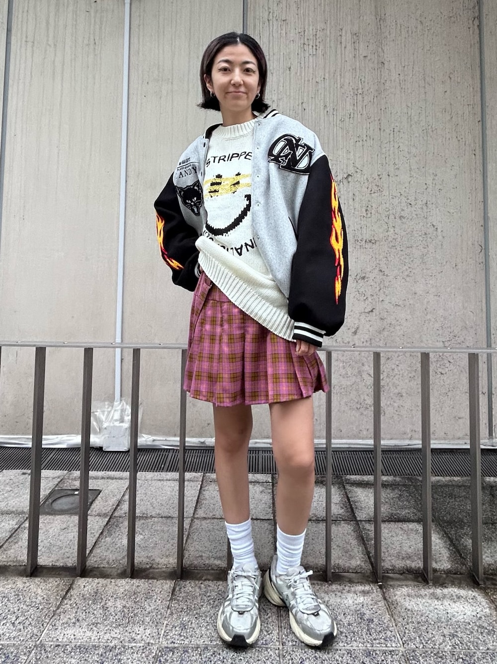 スマイルモチーフのニットに スタジャンとチェックのスカートパンツを合わせたストリートコーデ★ Candy Stripper本社/小原/162cm