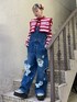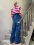 ボーダーのリブニットにデニムのサロペットとキルティングジャケットを合わせた カジュアルコーデ☆ Candy Stripper名古屋店/太田/156cm