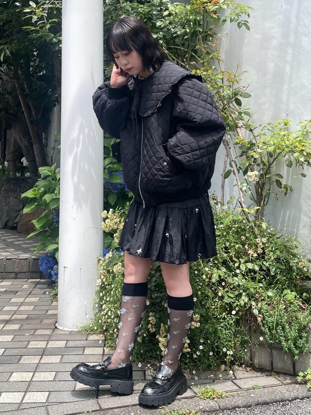 ビッグカラーが目を惹くキルティングジャケットにバルーンスカートを合わせた ガーリーコーデ♡ Candy Stripper福岡店/河野/160cm