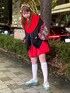 ハート型のニットトップスに MA-1とバルーンスカートを合わせた レッドコーデ♡ Candy Stripper名古屋店/太田/156cm