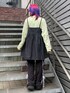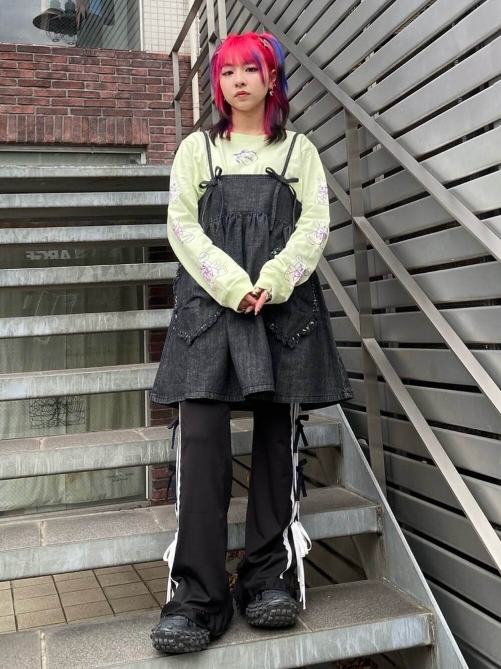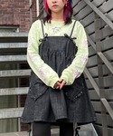 ロンTにデニムのミニワンピースと トラックパンツを合わせた レイヤードスタイル★ Candy Stripper原宿店/久慈/148cm