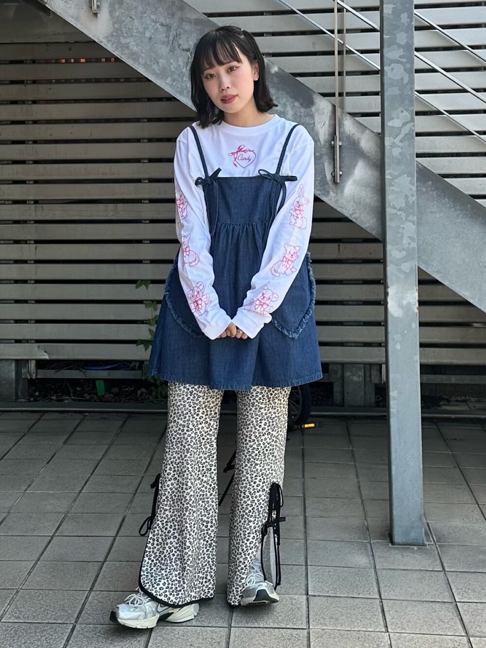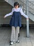ハート型ポケットがキュートなミニワンピにロンTとフレアパンツを合わせた デートコーデ♡ Candy Stripper福岡店/河野/160cm