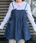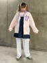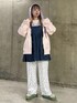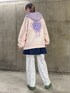 キュートなモチーフを盛り込んだフーディーに ラグラントップスとデニムのキャミワンピと 花柄のパンツを合わせた春先取りコーデ♡ Candy Stripper名古屋店/太田/156cm