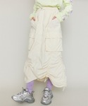 レイヤード風デザインのトップスに カーゴスカートとビーニーを合わせた 春先取りコーデ★ Candy Stripper本社/小原/162cm