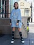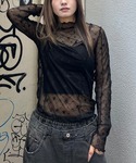 ドッグ・キャットモチーフのグラフィックのラグラントップスに星柄のシースルートップスを合わせた休日スタイル★ Candy Stripper本社/小原/162cm