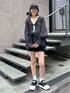 セーラーカラーのブラウスにキャミソールと ドロワーズとキャップを合わせた モノトーンコーデ★ Candy Stripper本社/小原/162cm