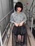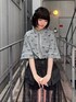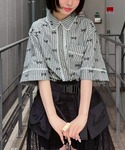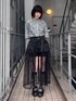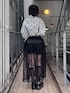 ストライプ素材のシャツにチュールレースの巻きスカートとドロワーズを合わせた モノトーンコーデ★ Candy Stripper福岡店/馬場/167cm