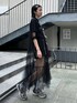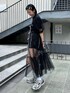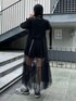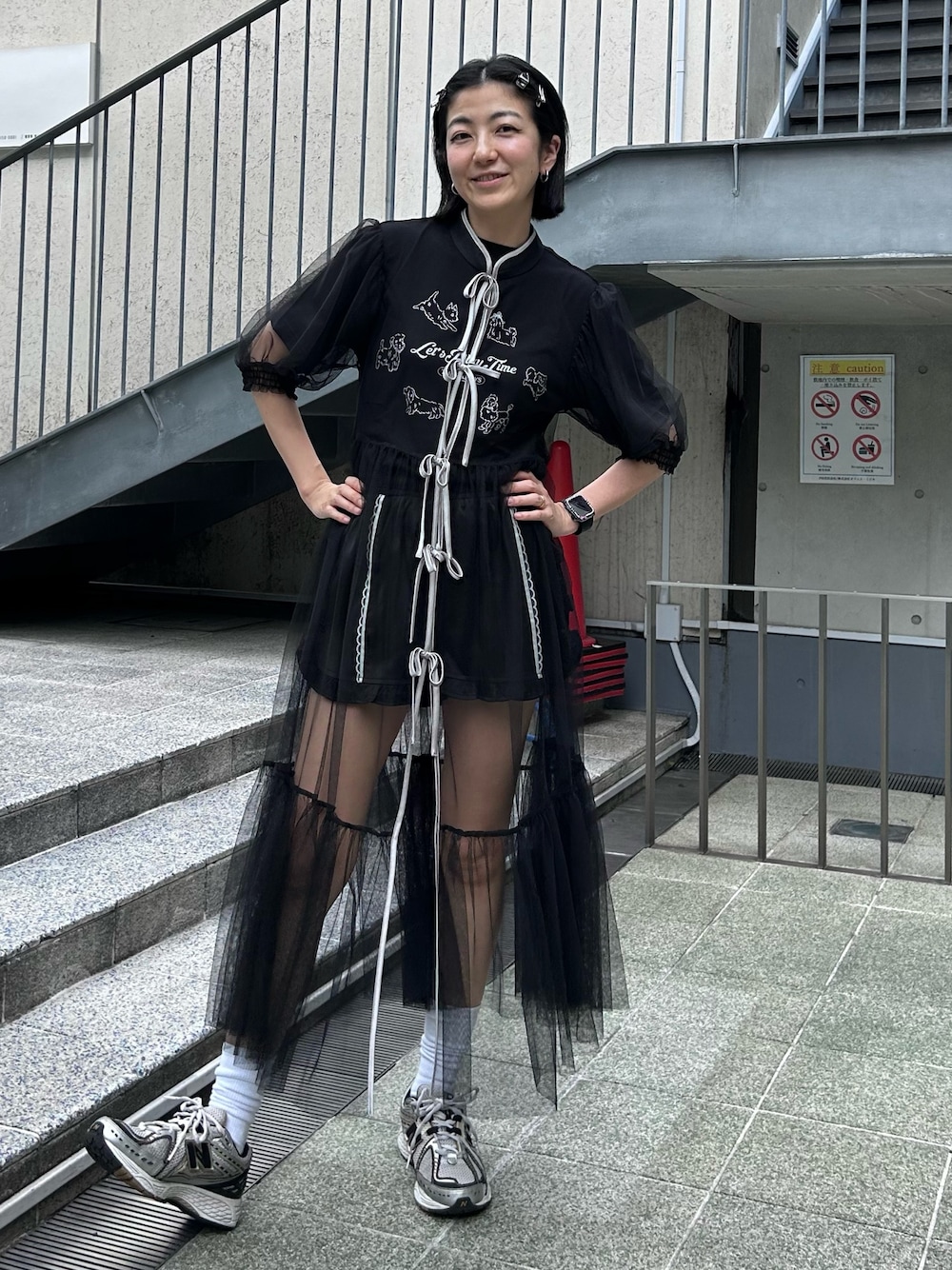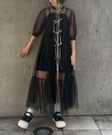 チャイナディティールのチュールワンピースに Tシャツとショートパンツを合わせた ワンピースコーデ♪ Candy Stripper本社/小原/162cm