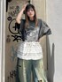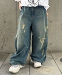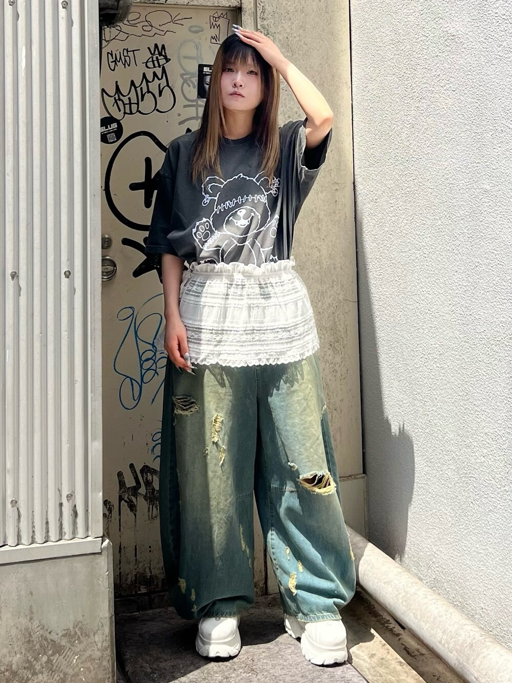 ビッグTシャツにレースエプロンとデニムパンツを合わせたレイヤードスタイル♪ Candy Stripper仙台店/鈴木/160cm