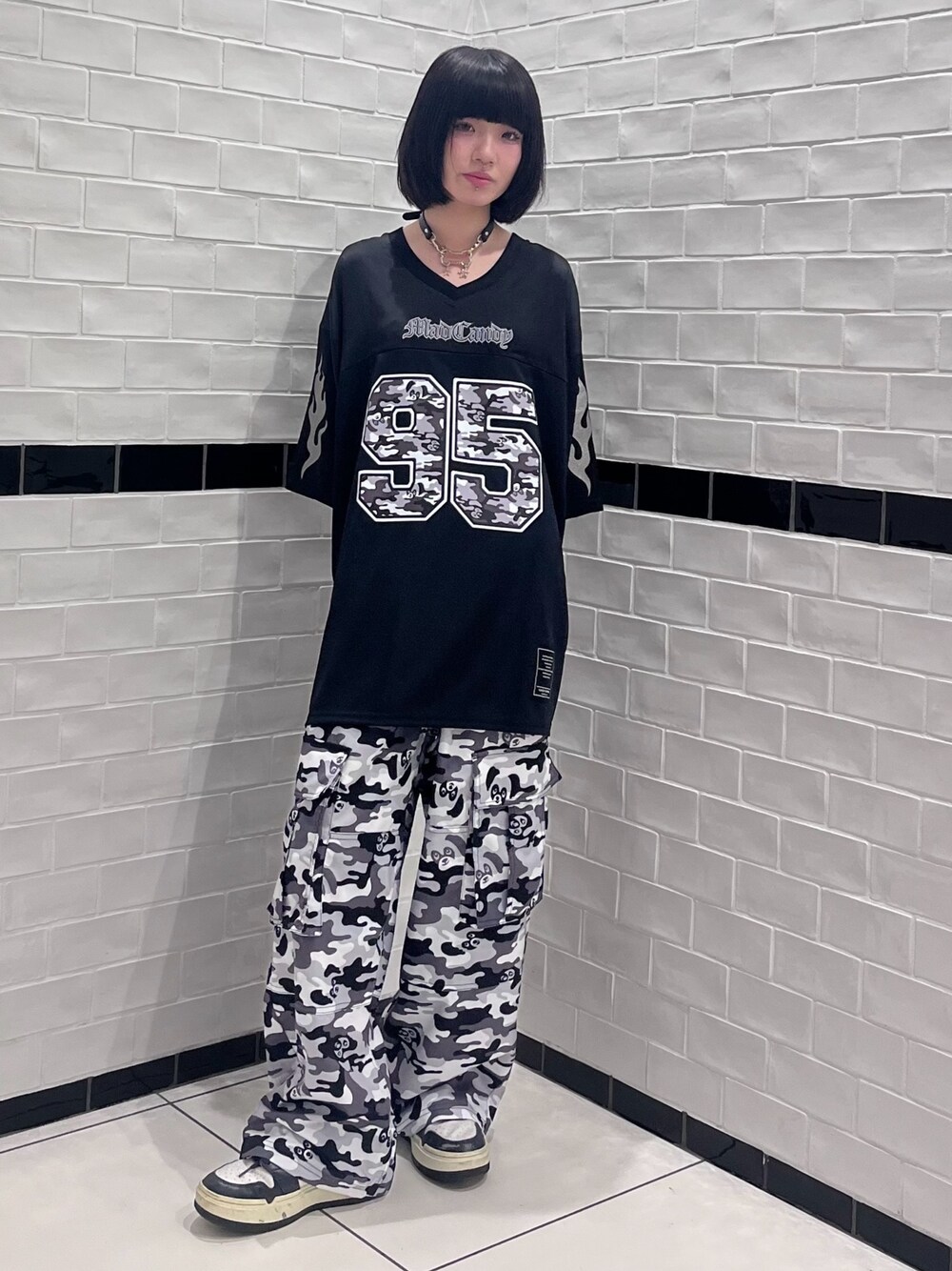 ナンバリングトップスにカーゴパンツを合わせたTシャツコーデ★ Candy Stripper福岡店/馬場/167cm