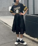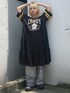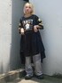 ゲームTシャツ風のスポーティなワンピースにリメイク風のイージーパンツを合わせたカジュアルブラックコーデ★ Candy Stripper原宿本店/久慈/148cm