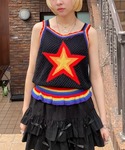 セーラーカラーのトップスにレトロなカラーリングが目を惹くキャミソールをレイヤードさせたカジュアなおしゃれブラックコーデ☆ Candy Stripper福岡店/馬場/166cm