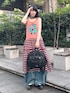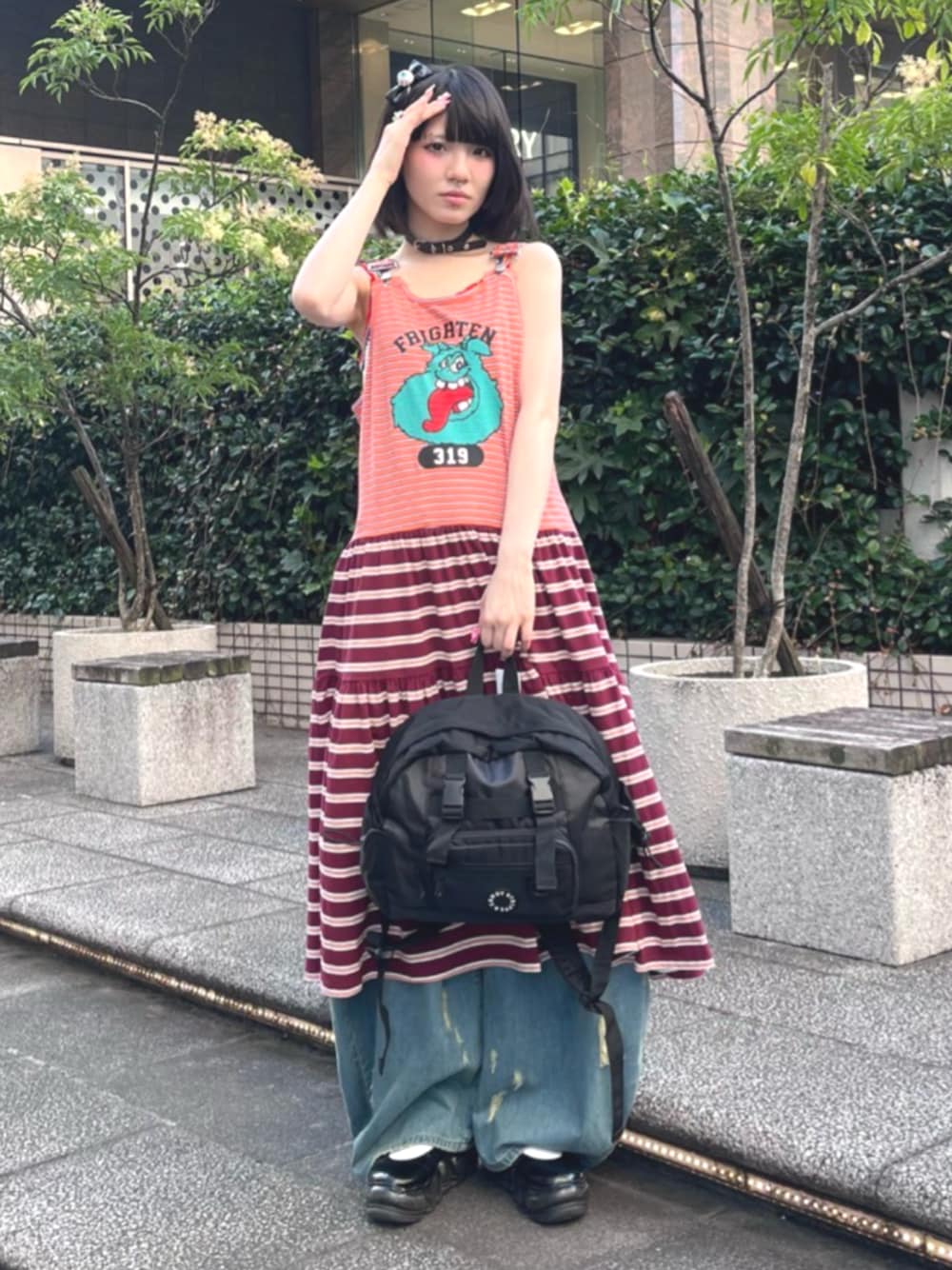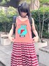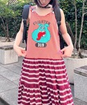 2種類のマルチボーダーを組み合わせた夏らしいビビッドな カラーリングで仕上げたタンクワンピースにトレンドのバレルシルエットのデニムパンツを合わせたコーデ♪ Candy Stripper福岡店/馬場/166cm