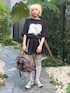 ガーリーなオリジナルTシャツに光沢感のある生地を使用したショートパンツを合わせたカジュアルガーリーコーデ◎ Candy Stripper原宿本店/久慈/148cm